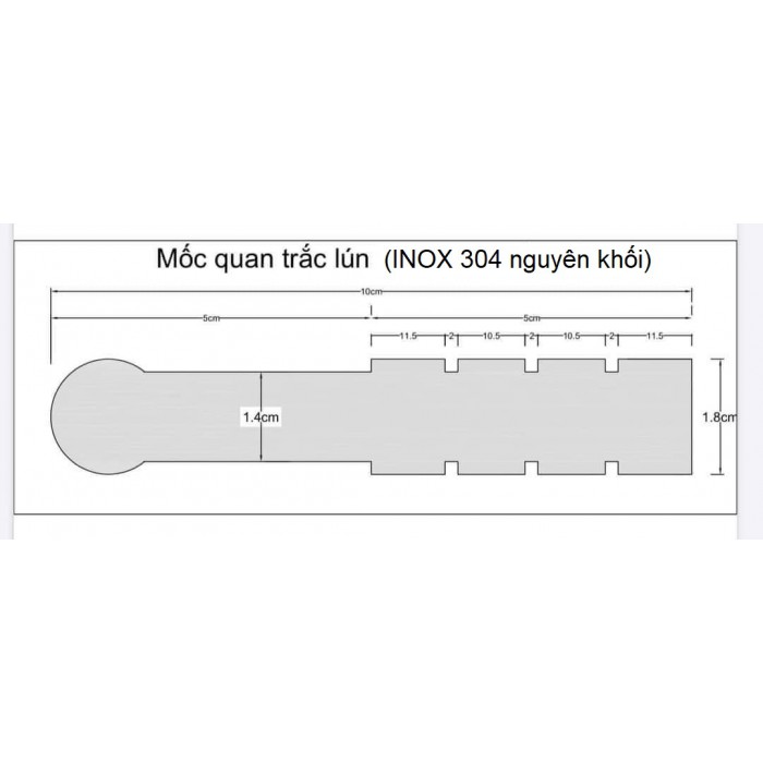 Mốc được cấu tạo bằng inox 304 nguyên khối, kích thước dài 100mm đường kính D=18mm.
